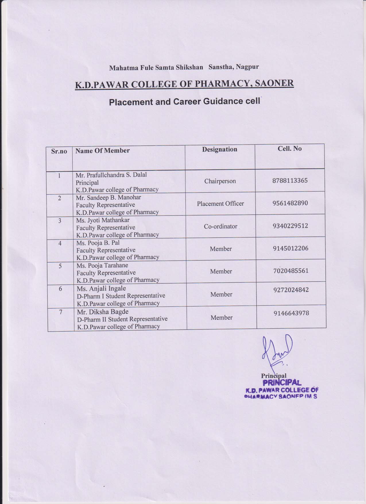 K. D. PAWAR COLLEGE OF PHARMACY