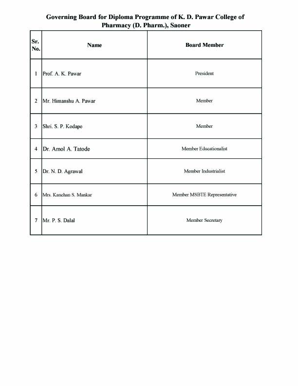 K. D. PAWAR COLLEGE OF PHARMACY